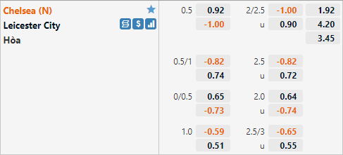 Chelsea đang được nhà cái đánh giá cao với tỷ lệ chấp 1/2 trên sàn giao dịch châu Á, đây là tỷ lệ hợp lý khi Chelsea có chất lượng đội hình tốt hơn Leicester. Tỷ lệ tài xỉu của trận đấu đang được công khai ở mức 2 1/4 và điểm ăn ít, nhìn vào mức tỷ lệ có thể thấy giới chuyên môn đang tin vào khả năng trận đấu sẽ diễn ra với một thể trận chặt chẽ.