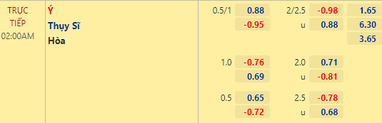 AEGoal soi kèo tổng bàn thắng và kèo phạt góc trận đấu giữa Italia vs Thụy Sĩ diễn ra lúc 02h00 ngày 17/06 trong khuôn khổ vòng bảng - Euro 2020.
