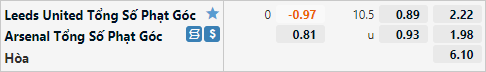 Lối chơi hiện tại của cả Leeds và Arsenal đều không tạo ra quá nhiều tình huống phạt góc. 4/5 trận đấu gần nhất của Leeds kết thúc với kết quả xỉu phạt góc, con số bên phía Arsenal là 5/7 trận gần nhất. Với dự đoán trận đấu sẽ diễn ra với một thế trận cởi mở thì nhiều khả năng trận đấu này cũng có kết quả phạt góc tương tự bởi 2 đội sẽ có rất nhiều phương án tiếp cận khung thành đối phương thay vì phải sử dụng những tình huống treo bóng từ hai cánh hay dứt điểm từ xa.