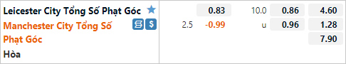 Ở giai đoạn gần đây các trận đấu của cả Leicester và Man City ghi nhận nhiều tình huống phạt góc. Với Leicester là 3 trận đấu gần nhất đều có từ 9 tình huống trở lên, trong khi Man City cũng đã tạo ra 38 tình huống phạt góc sau 4 trận đấu gần nhất. Với dự đoán Leicester sẽ chọn các tiếp cận trận đấu một cách thận trọng thì khả năng trận đấu có nhiều tình huống phạt góc hoàn toàn có thể xảy ra. Bởi khi gặp khó khăn trong việc tiếp cận khung thành đối phương thì lựa chọn treo bóng từ hai cánh sẽ là phương án tốt để phá vỡ thể bế tắc.