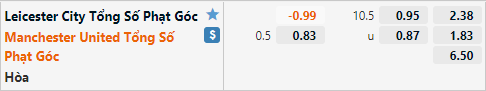 Tỷ lệ tài xỉu phạt góc của trận đấu đang được công khai ở mức 10 1/2. Đây là mức tài xỉu tương đối cao khi chỉ có 1/8 cuộc đối đầu gần nhất của hai đội ghi nhận nhiều hơn 10 tình huống phạt góc, nhưng hợp lý với những kết quả thi đấu của hai đội gần đây. Cụ thể là 3/5 trận đấu gần nhất của Leicester và Man Utd có nhiều hơn 10 tình huống phạt góc 1 trận, nhưng với dự đoán trận đấu diễn ra với thế trận cân bằng và cởi mở thì lựa chọn cửa xỉu chắc đã là một lựa chọn mạo hiểm. Với một thế trận mở thì 2 đội có thể lựa chọn nhiều phương án tấn công hơn là treo bóng vào từ hai cánh.
