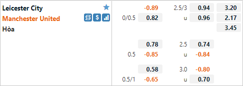 Hiện tại trên sàn giao dịch châu Á Man Utd được nhà cái đánh giá cao hơn với tỷ lệ chấp 1/4 và mức điểm ăn ít. Đây cũng là tỷ lệ chấp của Man Utd trong 2 tới sân King Power của mùa giai trước (Ngoại hạng và cúp FA), nhưng cả 2 lần đội khách đều thua kèo. Leicester City cũng đang có lợi thế về tinh thần khi thắng 2 trận đối đầu với Man Utd gần nhất.