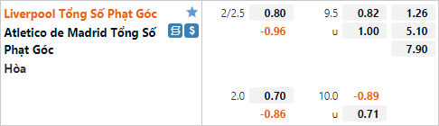 Trận đấu lượt đi của hai đội cũng chỉ có 7 tình huống phạt góc được ghi nhận. Lối chơi của hai đội cũng thường không đem lại cho họ nhiều tình huống phạt góc. Nhưng với dự đoán Atletico Madrid sẽ nhập cuộc một cách thận trọng trận này thì lựa chọn cửa tài phạt góc có thể sẽ là một lựa chọn hợp lý khi hàng công của hai đội không có nhiều cơ hội tiệp cận khung thành đối phương.