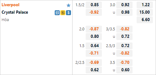 AEGoal soi kèo tổng bàn thắng và kèo phạt góc trận đấu giữa Liverpool vs Crystal Palace diễn ra lúc 02h00 ngày 16/8 trong khuôn khổ giải Ngoại hạng Anh