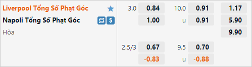 AEGoal soi kèo tổng bàn thắng và kèo phạt góc trận đấu giữa Liverpool vs Napoli diễn ra lúc 03h00 ngày 02/11 trong khuôn khổ vòng bảng cúp C1 châu Âu