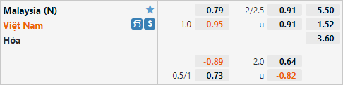 Hiện tại thầy trò HLV Park Hang-seo đang được nhà cái đánh giá ở cửa trên với tỷ lệ chấp 1 hoà cho trận đấu này. Mức tài xỉu của trận đấu được công khai ở mức 2 1/4, đây là mức tỷ lệ hợp lý khi ĐT Việt Nam luôn đề cao lối chơi chặt chẽ trong khi.