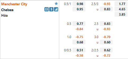 Với lợi thế sân nhà và lực lượng tốt hơn đối thủ Man City đang được nhà cái châu Á đánh giá cao hơn với tỷ lệ chấp 3/4 cho trận đấu này. Đây là mức chấp tương đối cao của Man City khi trận đấu tương tự của mùa giải trước Man Xanh chỉ có tỷ lệ chấp 1/2. Thời gian gần đây Chelsea có thành tích đối đầu tương đối tốt với Man City khi thắng 3/4 trận gần nhất.