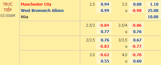 Soi kèo tài xỉu, phạt góc trận Man City vs West Brom (03h00)