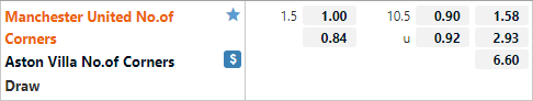 Tỷ lệ tài xỉu phạt góc của trận đấu đang được công khai ở mức 10 1/2. Mức tài xỉu này là hợp lý khi 3/4 trận đấu gần nhất của Man Utd đều ghi nhận ít nhất 11 tình huống phạt góc 1 trận, trong khi Aston Villa cũng kiếm được tới 19 tình huống phạt góc ở 3 trận đấu gần nhất. Nhưng với dự đoán trận đấu sẽ diễn ra với kịch bản cởi mở trận này thì lựa chọn cửa xỉu chưa chắc đã là một lựa chọn mạo hiểm. Bởi 2 đội sẽ không cần phải lựa chọn phương án treo bóng từ 2 cánh hay dứt điểm từ xa khi không quá khó khăn trong việc tiếp cận khung thành đối phương.