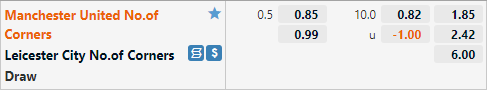 Tỷ lệ tài xỉu phạt góc của trận đấu đang được nhà cái châu Á công khai ở mức 10 hoà và mức điểm ăn ít bên phía của tài. Rất có thể gần tới giờ bóng lăn sẽ xuất hiện tỷ lệ 10 1/2. Đây là mức tỷ lệ tương đối cao nếu so với mặt bằng chung của giải ngoại hạng Anh nhưng là hợp lý ở thời điểm hiện tại khi nhiều khả năng 2 đội sẽ thi đấu cởi mở trận này. Như đã nói ở trên việc Man Utd không sử dụng đội hình mạnh nhất và Leicester mong muốn chiến thắng sẽ tạo nên trận đầu sôi nổi với nhiều tình huống tân công của cả hai đội, lựa chọn cửa tài phạt góc sẽ là một lựa chọn tốt.