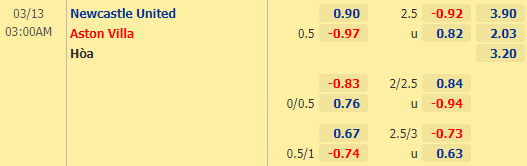 Chuyên gia AEGoal phân tích, dự đoán kèo tài xỉu, phạt góc trận Newcastle vs Aston Villa diễn ra lúc 03h00 ngày 12/03 trong khuôn khổ Ngoại hạng Anh.