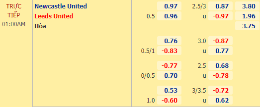 Với tên tuổi của đôi bên, việc nhà cái đưa ra mức tài xỉu 2 3/4 không phải là thấp. Theo thống kê thì ở 3 trận gần nhất Leeds Utd đều không thể ghi bàn, trong khi tình trạng tương tự đến với Newcastle ở cả 4 trận mới đây. Rõ ràng, hàng công của đôi bên đang để lại nhiều sự nghi ngờ trước cuộc đụng độ này, vậy mà tài xỉu vẫn lên tới 2 3/4.