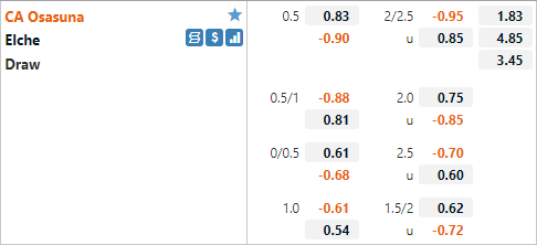 Ở giai đoạn hiện tại Osasuna không có được phong độ tốt khi thua liên tiếp 3 trận đấu gần nhất, đội chủ nhà cũng không thể ghi bàn trong ở 4 vòng đấu gần đây. Có thể thấy Osasuna đang gặp nhiều vấn đề ở hàng công, việc được tiếp đón đối thủ yếu như Elche thời điểm này là cơ hội tốt cho họ có bàn thắng giải toả tâm lý. Nhưng để đội chủ nhà có một trận thắng thuyết phục lại là việc hoàn toàn khác.