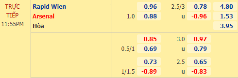 Trong 3 trận mới nhất, Rapid Wien ghi tổng cộng tới 10 bàn, con số tương đối thuyết phục. Nên nhớ họ từng có 3 lần chọc thủng lưới LASK Linz - đối thủ cũng được tham dự Europa League. Phía bên đối diện, Arsenal chắc chắn dễ đá hơn khi đối phương không mạnh như Liverpool hay Man City, những đối thủ mà họ đụng phải thời gian qua. Vậy nên khả năng hàng công của Arsenal bùng nổ trận này cũng được đánh giá cao.