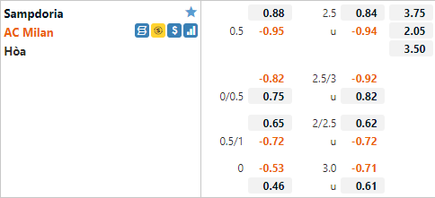 AEGoal soi kèo tổng bàn thắng và kèo phạt góc trận đấu giữa Sampdoria vs AC Milan diễn ra lúc 01h45 ngày 24/8 trong khuôn giải VĐQG Italia.