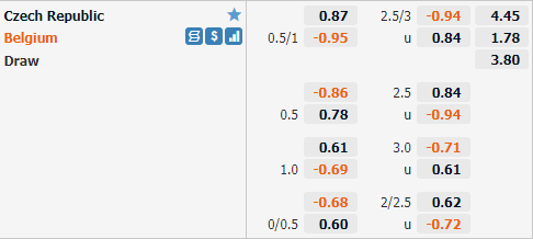 Trận đấu này nhà cái châu Á đang đánh giá ĐT Bỉ ở vị trí cửa trên với tỷ lệ chấp 3/4. Trong khi đó tỷ lệ tài xỉu của trận đấu được công khai ở mức 2 3/4 và điểm ăn ít bên phía cửa xỉu. Xét về chất lượng đội hình và phong độ hiện tại thì chắc chắn ĐT Bỉ sẽ vượt trội so với đối thủ, nhưng nếu nhìn vào bảng đấu hiện tại của hai đội thì 3 đối thủ còn lại là Belarus, Estonia và Wales không có nhiều cơ hội tranh chấp 2 vị trí đầu bảng nên rõ ràng đây sẽ là trận đấu quan trọng để tìm ra ngôi đầu bảng đầu này.