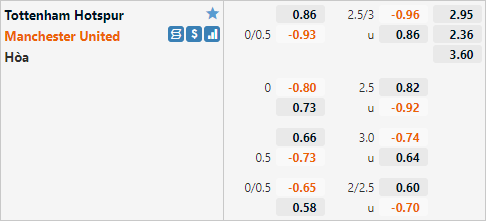 Mặc dù phải thi đấu trên sân khách nhưng Man Utd vẫn được nhà cái châu Á đánh giá cao hơn trận này với tỷ lệ chấp 1/4 và mức điểm bỏ. Ở trận đấu tương tự của mùa giải trước Quỷ đỏ cũng có tỷ lệ chấp tương tự và họ đã không làm thất vọng giới đầu tư khi kết thúc trận đấu với chiến thắng 3-1, Man Utd cũng đang chiếm ưu thế trong quá khứ đối đầu khi thắng 3 hòa 1 sau 4 lần làm khách của Tottenham gần nhất.