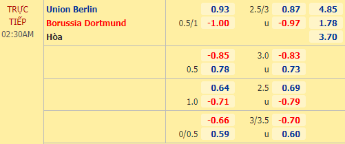 Theo thống kê thì 5/6 trận gần đây của Union Berlin cùng 3 trận vừa qua của Dortmund và cả 3 lần đối đầu mới nhất giữa đôi bên đều xuất hiện tối thiểu 3 bàn. Với những con số như vậy, hẳn phần đông NHM sẽ tin tưởng vào kịch bản cởi mở. Điều này hoàn toàn có lý bởi ngoại trừ những dữ liệu như trên thì Dortmund luôn được xếp vào nhóm những đội bóng ưa thích lối chơi tấn công và các trận cầu của họ cũng thường cởi mở.