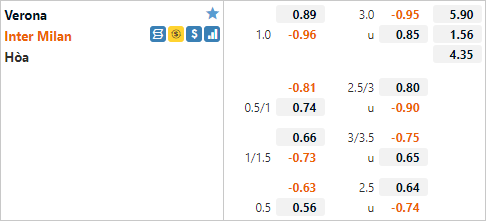 Trong khi đó Inter Milan duy trì được phong độ ấn tượng kể từ giai đoạn chuẩn bị cho mùa giải mới. Đội bóng thành Milan đang có chuỗi 4 trận thắng liên tiếp, ghi được 15 bàn thắng (trung bình gần 4 bàn/trận) và giữ sạch lưới cả 4 trận. Tất nhiên có được thành tích này một phần là do họ chỉ gặp nhưng đối thủ bị đánh giá yếu hơn nhưng đối thủ Verona trận này cũng không có gì khác biệt. Một chiến thắng thuyết phục tiếp theo cho Inter Milan là điều không có gì đáng ngạc nhiên. Lựa chọn cửa tài sẽ là một lựa chọn an toàn.