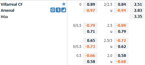 Villarreal có lợi thế sân nhà trong trận đấu lượt đi với Arsenal tuần này. Với lợi thế sân nhà Villarreal được đánh giá nhỉnh hơn đối thủ chút ít với tỷ lệ 0:0 và mức điểm ăn ít. Tỷ lệ tài xỉu của trận đấu được công khai ở mức 2 1/2, đây là mức tỷ lệ hợp lý ở thời điểm này khi hai đội đều có lối chơi tương đối cởi mở.