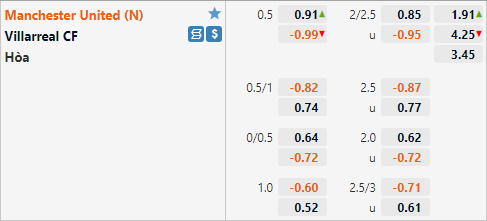 Villarreal sẽ có cuộc đối đầu với Man Utd trong trận chung kết Europa League mùa giải này. Trận đấu được tổ chức trên sân vận động Energa Gdańsk (Gdańsk, Ba Lan). Với lực lượng và phong độ tốt hơn đối thủ các cầu thủ Man Utd đang được nhà cái châu Á đánh giá ở cửa trên với tỷ lệ chấp 1/2 và mức điểm ăn tương đối cân bằng. Tỷ lệ tài xỉu của trận đấu đang được công khai ở mức 2 1/4 và điểm ăn ít bên phía cửa tài.