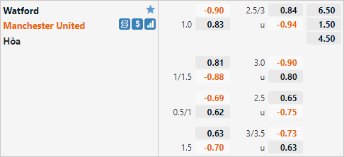 Với lực lượng vượt trội so với đối thủ Man Utd đang có tỷ lệ chấp 1 hoà và mức điểm ăn ít trên sàn giao dịch châu Á. Đây là mức chấp cao của các cầu thủ khách khi lần đối đầu gần nhất tại giải Ngoại hạng Man Utd có lợi thế sân nhà nhưng cũng chỉ có tỷ lệ chấp 1 hoà, điều này cũng không khó hiểu bởi Watford thi đấu không tốt mùa giải này.