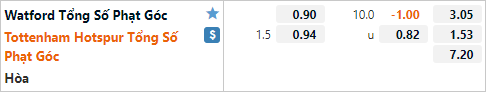 Tỷ lệ tài xỉu phạt góc của trận đấu đang được công khai ở mức 10 hoà và điểm ăn ít bên phía của xỉu. Có thể thấy đây là mức tài xỉu phạt góc tương đối thấp so với mặt bằng chung của giải Ngoại hạng. Nhưng mức tỷ lệ thấp này hoàn toàn phù hợp với dự đoán trận đấu diễn ra sối nổi và Tottenham là đội chiếm ưu thế.