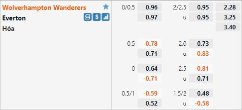 Với lợi thế sân nhà Wolves được nhà cái đánh giá ở cửa trên với tỷ lệ chấp 1/4 trận này. Đây cũng là tỷ lệ chấp của đội chủ nhà trong trận đấu tương tự của mùa giải trước, nhưng ở trận đấu đó Wolves đã gây thất vọng khi kết thúc trận đấu với thất bại 1-2.
