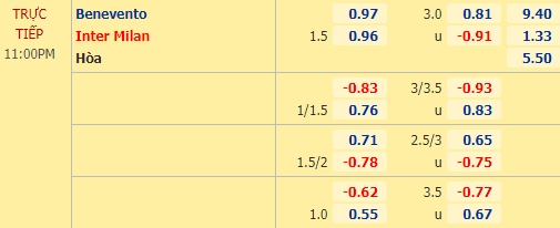 Kèo chấp hòa trong hiệp 1 là khả quan với Inter Milan. Nên nhớ dù thắng trận cầu ở vòng mở màn nhưng hết hiệp 1 trận đó thì Benevento lại bị Sampdoria dẫn trước. Còn với Inter Milan, họ trải qua 11 trận liên tiếp ghi bàn ở hiệp 1. Và 2/3 lần đối đầu gần nhất, Inter cũng đều dẫn trước đối phương trước giờ nghỉ giải lao giữa 2 hiệp.