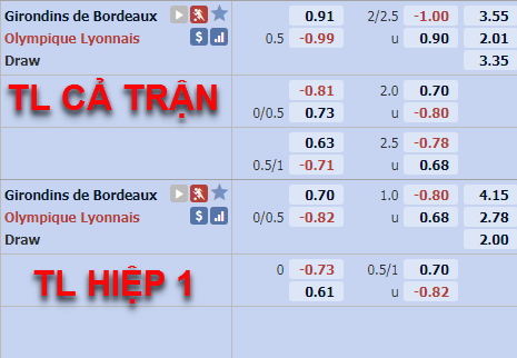 Bordeaux thường có được kết quả tốt khi tiếp đón Lyon trên sân nhà. Cụ thể họ đã thắng kèo hiệp 1 5 trận đầu gần nhất tiếp đón Lyon. Nhưng ở giải đoạn đầu mùa giải mới các cầu thủ Bordeaux không có được sự ổn định trong 45 phút đầu tiên của trận đấu, họ chỉ dẫn trước đối thủ ở 2 trong tổng cộng 6 trận đầu gần nhất. Trong khi đó Lyon đã thể hiện phong độ ấn tượng tại Champions League và trận đấu gần nhất họ đã xuất sắc giành chiến thắng với tỷ số 4-1. Với lực lượng và phong độ hiện tại các cầu thủ Lyon hoàn toàn đủ khả năng có lợi thế ngay trong 45 phút đầu tiên của trận đấu.