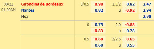 AEGoal soi kèo tổng bàn thắng và kèo hiệp 1 trận cầu giữa Bordeaux vs Nantes trong khuôn khổ giải VĐQG Pháp diễn ra lúc 00h00 ngày 22/08.