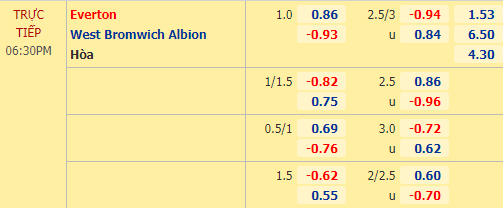 Trong khi ấy, West Brom bị đánh giá thấp ở khả năng ghi bàn. Chắc chắn sau khi thua đậm Leicester trên sân nhà, West Brom sẽ phải thận trọng hơn khi hành quân tới Goodison Park. Thực tế khi mở kèo, nhà cái đưa ra mức tài xỉu 2 3/4 với điểm ăn thấp nhưng dần dần, mốc chính đã bị kéo về chỉ còn 2 1/2 đó rõ ràng không phải là tín hiệu khả quan với những ai ưa thích sự cởi mở.