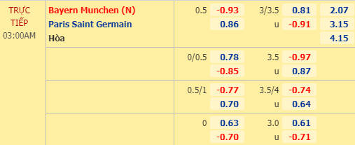 Trong khi đó, Bayern cũng bị Chelsea lẫn Barca chọc thủng lưới ở những trận vừa qua. Ở cả 3 lần đối đầu trước đây, Bayern Munich cũng đều bị PSG chọc thủng lưới. Chính vì vậy, nên tin tưởng vào cửa tài trận này.