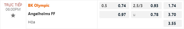 Tỷ lệ kèo BK Olympic Malmo vs Angelholms FF