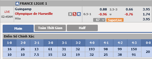 Nói tóm lại, ai cũng nghĩ rằng Marseille sẽ chơi trận đấu tại Ligue 1 hôm nay với tinh thần thiếu quyết tâm, giữ sức cho vài ngày sau hành quân đến Lyon đá chung kết châu lục. Đà mất điểm của đội khách vì thế đã xuất hiện ngay từ thời điểm đầu phiên. Kèo chính chấp 3/4 với điểm lợi nhuận cân bằng vào lúc niêm yết đã lập tức bị điều chuyển xuống điểm bỏ khá sâu ở thời điểm hiện tại.