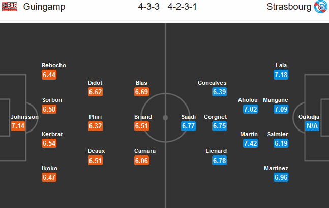Strasbourg: N’Dour (0/0 hậu vệ), Bahoken (1/0 tiền đạo)