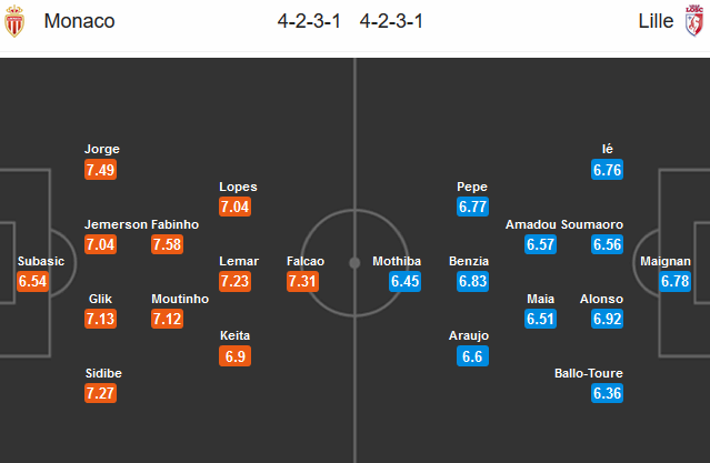 AS Monaco: Traoré (3/3 tiền vệ), Pellegri (1/0 tiền đạo)