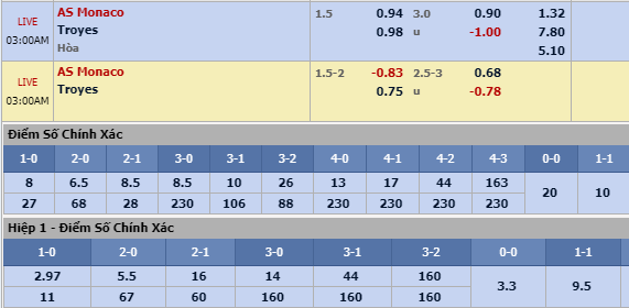 Phạt góc: Kể từ đầu mùa, trung bình mỗi trận đấu chứng kiến Monaco được hưởng 4.88 quả phạt góc. Chỉ số đặc biệt này với Troyes tất nhiên khiêm tốn hơn rất nhiều, đội khách được hưởng phạt góc ít thứ 2 với tổng cộng 60 quả, đạt trung bình 3.75 quả mỗi trận. Rõ ràng, đây không phải trận đấu để tin tưởng vào kịch bản tưng bừng theo phạt góc. Chọn Dưới tổng phạt góc.