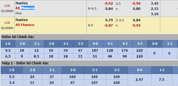 Phạt góc: Nantes là một trong những đội được hưởng ít phạt góc nhất tại Ligue 1 khi từ đầu mùa chỉ có trung bình 4.07 quả mỗi trận. Monaco có nhỉnh hơn nhưng mới ở mức trung bình với 4.86 quả mỗi trận. Hơn nữa, 3/4 trận gần đây của đội khách đều khép lại với tối đa 8 quả phạt góc cũng cho thấy chỉ số này khó đạt mức cao ở trận đấu đêm nay. Chọn Dưới tổng phạt góc cả trận.