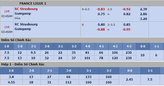 Tổng bàn thắng cả trận: Mặt bằng chung của bóng đá Pháp vốn không có nhiều bàn thắng được ghi. Ligue 1 đã nổi tiếng thành thương hiệu về giải đấu khan hiếm bà thắng. Do đó, rất hiếm khi nhà cái niêm yết kèo cho khả năng cởi bởi ở mức 2 1/2, nhất là giữa 2 cái tên thuộc diện yếu kém như Strasbourg và Guingamp. Điều bất thường đã xảy ra, trên sàn châu Á, quan điểm về khả năng diễn ra trận cầu mãn nhãn được nhà cái công khai thể hiện. Chọn Trên 2 1/2 bàn cả trận.