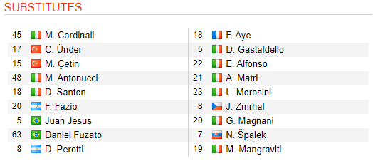 ĐỘI HÌNH RA SÂN CỦA AS ROMA