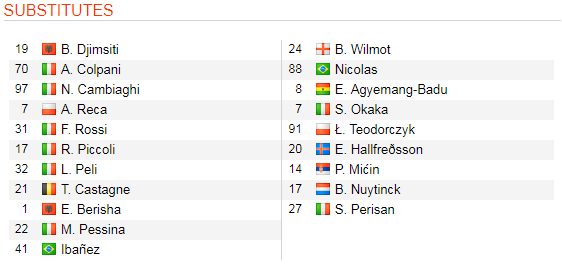 Udinese (3-5-2): Musso - Troost-Ekong, Maio, Samir - Larsen, SAndro, Mandragora, Paul, Zeegelaar - Pussetto, Lasagna
