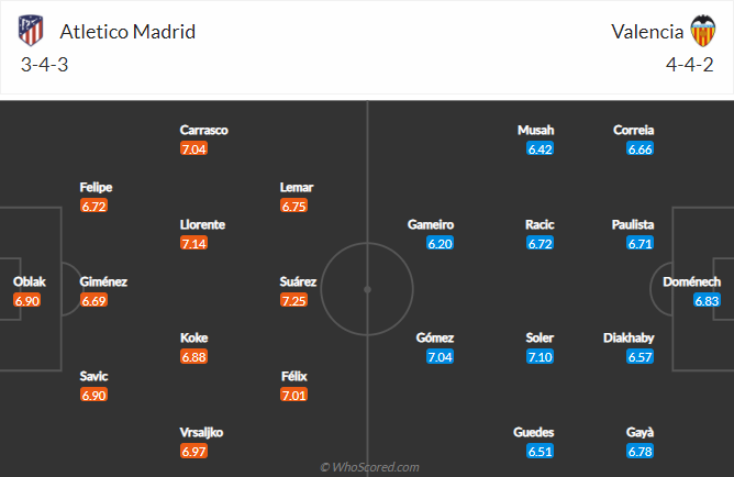 AEGoal cập nhật chính xác ĐỘI HÌNH RA SÂN trận Atletico Madrid vs Valencia diễn ra lúc 03h00 ngày 25/01 trong khuôn khổ giải VĐQG Tây Ban Nha.