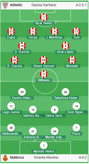 ĐỘI HÌNH RA SÂN trận Bilbao vs Mallorca, 19h00 ngày 27/06: VĐQG Tây Ban Nha