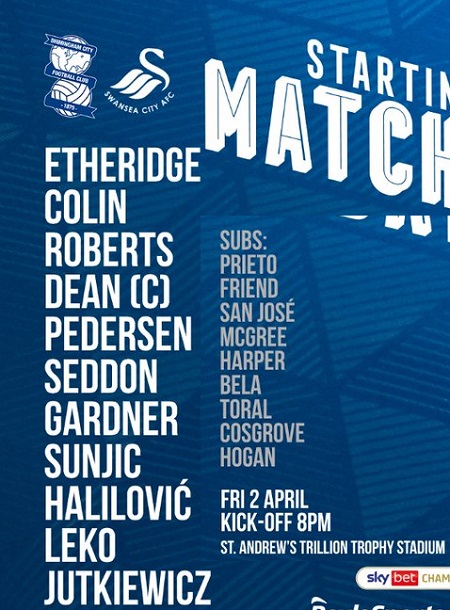 AEGoal cập nhật chính xác ĐỘI HÌNH RA SÂN trận Birmingham vs Swansea City diễn ra lúc 02h00 ngày 03/04 trong khuôn khổ giải Hạng nhất Anh.