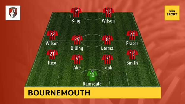 Bournemouth XI: Aaron Ramsdale, Steve Cook, Nathan Ake, Smith, Diego Rico, Billing, Harry Wilson, Fraser, Jefferson Lerma, Joshua King, Callum Wilson.