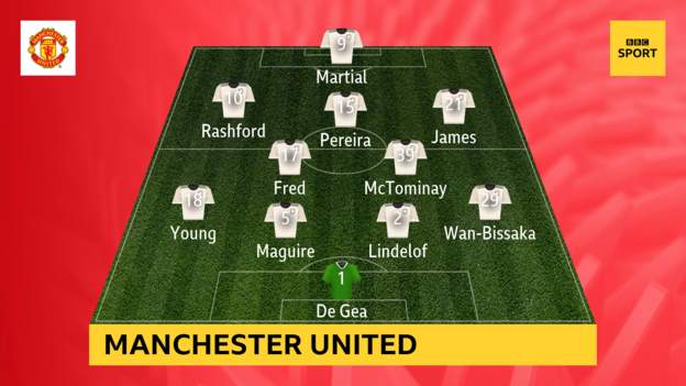 Man Utd XI: David de Gea, Wan-Bissaka, Lindelof, Maguire, Young, Fred, Daniel James, Andreas Pereira, McTominay, Martial, Rashford.