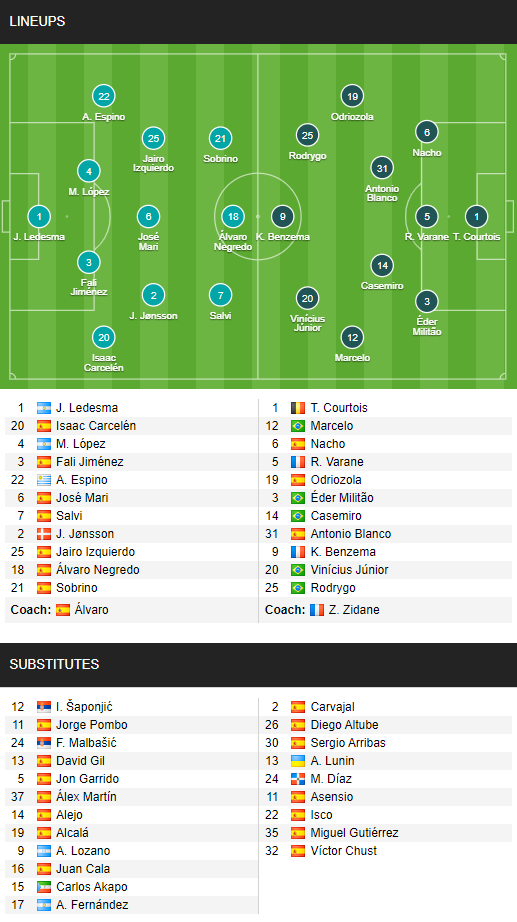Real Madrid: Courtois; Nacho, Militao, Varane, Mendy; Casemiro, Kroos, Modric; Asensio, Vinicius, Benzema