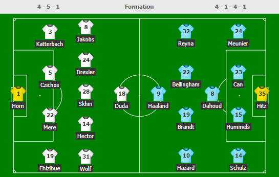- Dortmund: Vắng Axel Witsel, Marcel Schmelzer, Mateu Morey, Jadon Sancho (chấn thương); Khả năng ra sân của Manuel Akanji và Raphael Guerreiro còn bỏ ngỏ.