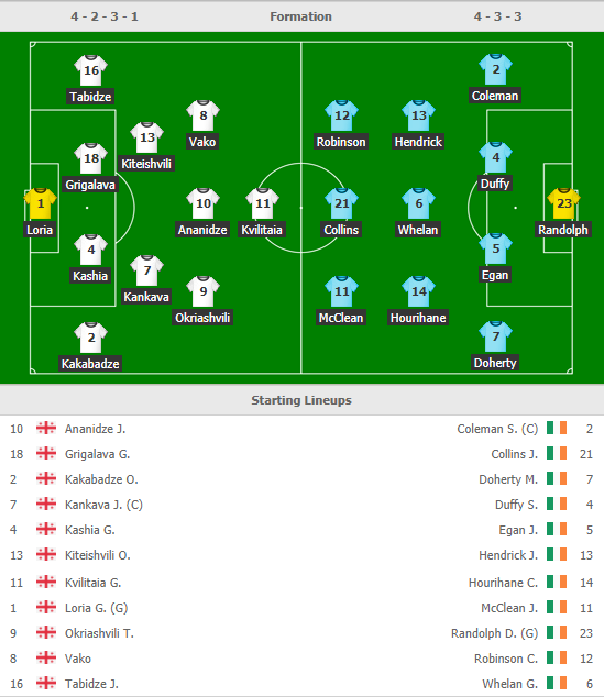 Georgia (4-5-1): Loria - Kashia, Navalovski, Kakabadze, Grigalava - Kankava, Ananidze, Qazaishvili, Okriashvili, Daushvili - Kvilitaia